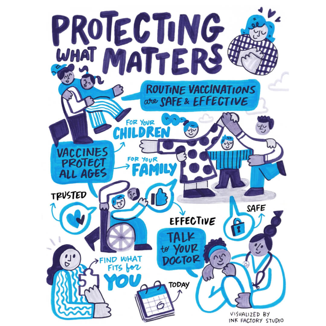 against serious illnesses. Talk to your doctor to find the right vaccines for your family. #ProtectingWhatMatterVaccines go through rigorous testing for safety and effectiveness—long before they reach your arm. Millions of people safely receive vaccines every year. Have questions? That’s okay—ask your doctor! #ProtectingWhatMatter